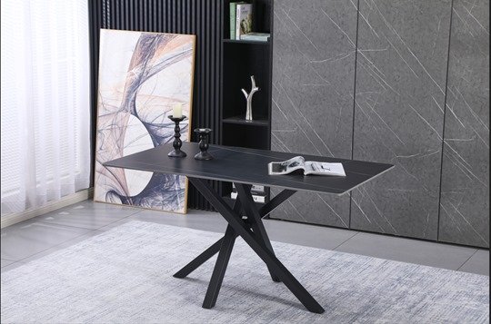 Upgrade your dining space with the Arezzo Ceramic Dining Table, featuring the sleek and modern Arezzo Dining Table. The table boasts a black metal X-frame base and a spacious, durable black tabletop, offering both stability and sophistication, providing style perfect for family dinners, entertaining guests, or enhancing a stylish café, this dining table seamlessly blends contemporary and classic elements for a refined dining experience.