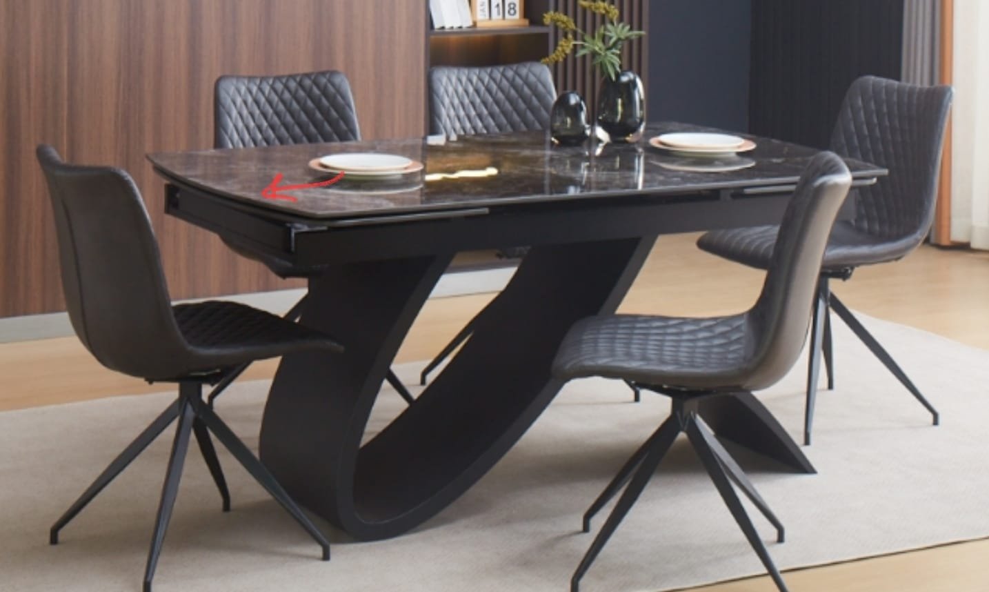 Add a touch of refined luxury to your dining area with the Aurelia Ceramic Dining Table. This beautifully crafted table showcases a sleek black ceramic top with subtle white and grey veining, creating a sophisticated and timeless look. The rectangular top rests on a beautifully crafted Infinity curved base, giving it a natural warmth that balances the cool elegance of the ceramic. The contrasting materials and modern design make the Aurelia Ceramic Dining Table a striking centrepiece, ideal for any dining room or kitchen with contemporary decor. It’s the perfect choice for those seeking a blend of style, functionality, and natural beauty in their dining furniture.